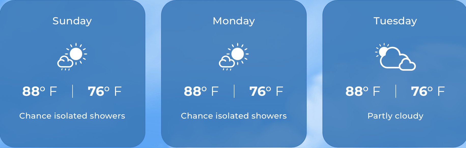 UV: 10.3 VERY HIGH (UP from yesterday) Expected temperatures: 75°F to 86°F. Yesterday: H 884.6°F L 73.8°F