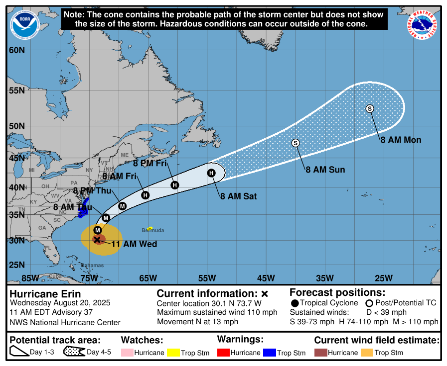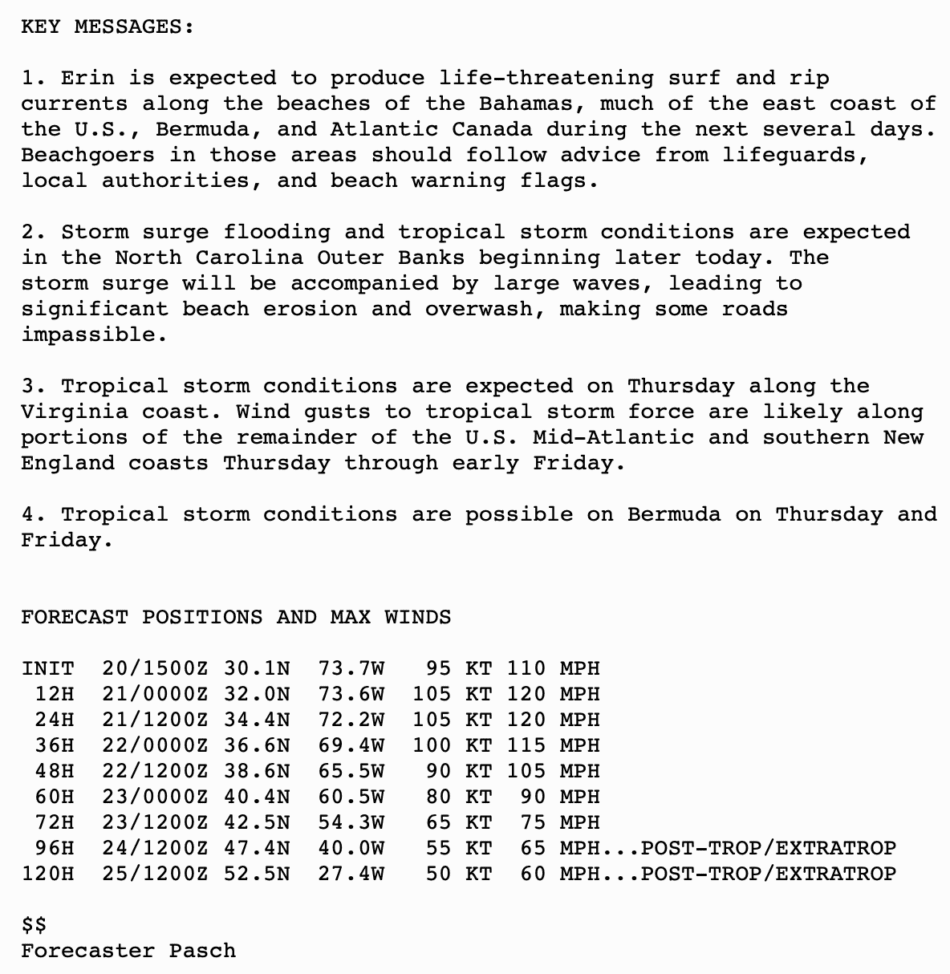 LARGE ERIN STRENGTHENS WHILE HEADED NORTH… …BEACHGOERS ARE CAUTIONED AGAINST SWIMMING AT MOST U.S. EAST COAST BEACHES DUE TO LIFE-THREATENING SURF AND RIP CURRENTS