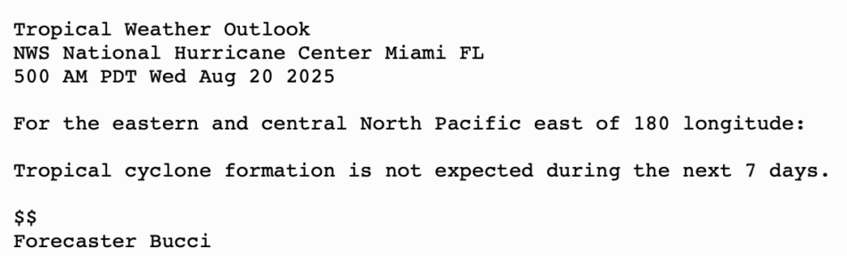 | Tropical Weather Outlook 500 AM PDT Wed 20 Aug 2025 1005 UTC Wed 20 Aug 2025 | |