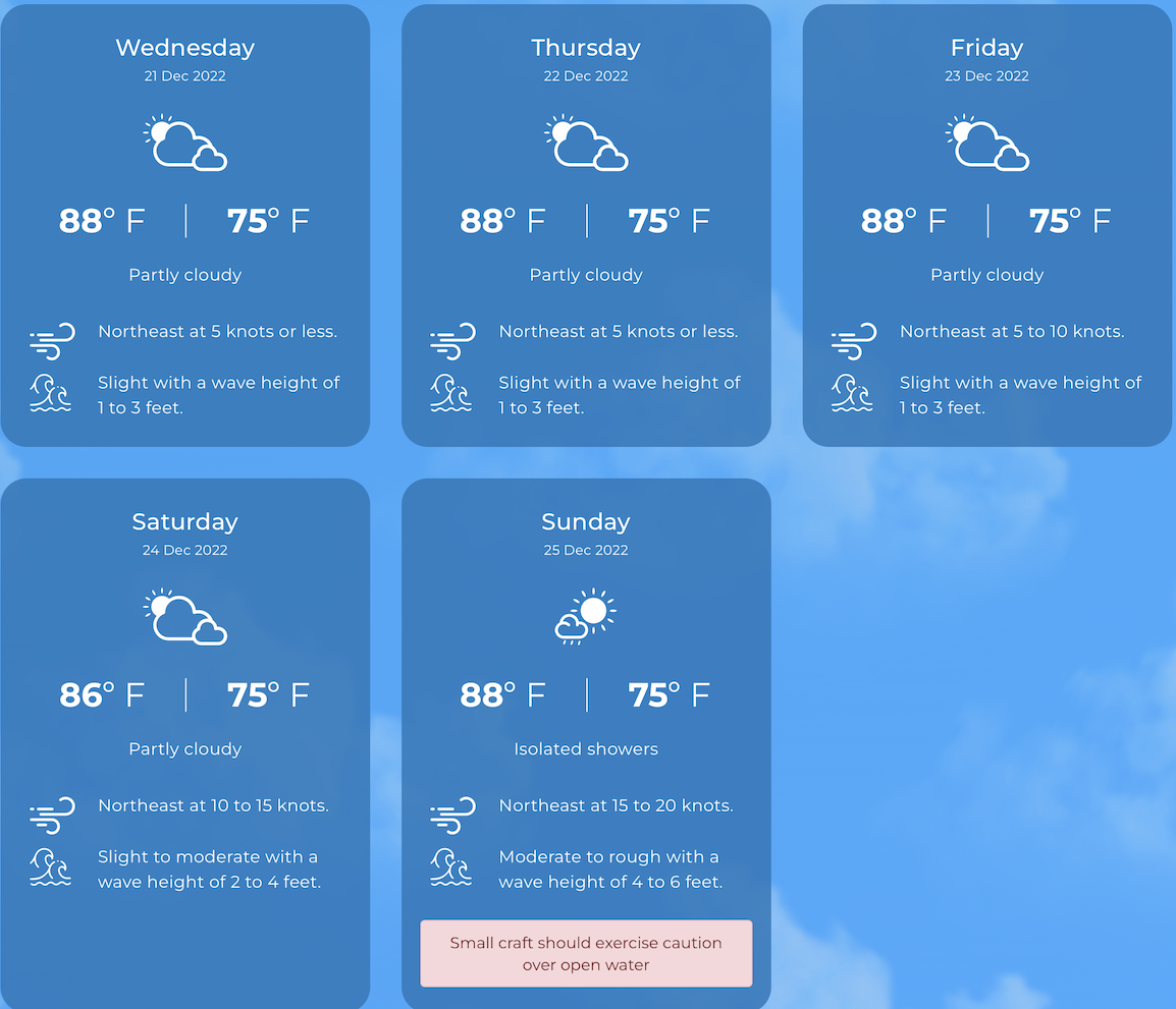 IMPORTANT NOTICEThe times reflected in the tidal table for Grand Cayman are predictions valid as references for sports fishing in areas near the coast of Grand Cayman. THEY ARE NOT SUITABLE FOR NAVIGATION. Remember that to practice any activity at sea like diving, windsurfing and fishing from a boat or underwater fishing should always be consulted with the official tide tables of the port of Grand Cayman.