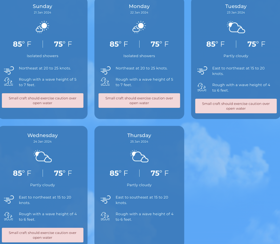 Moderate northeasterly winds and seas are expected across the Cayman area in association with a high-pressure system over the southeast US.