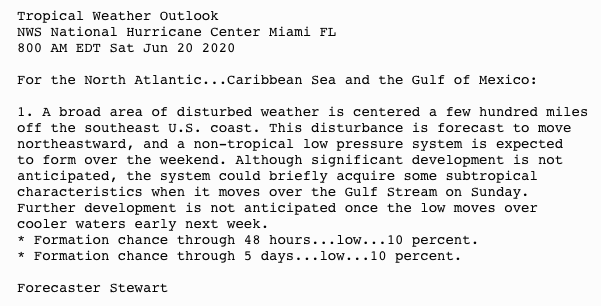 | Tropical Weather Outlook (en Español*) 800 AM EDT Sat Jun 20 2020 |