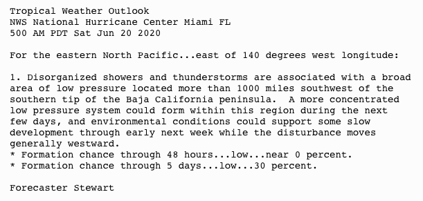 | Tropical Weather Outlook 500 AM PDT Sat Jun 20 2020 |