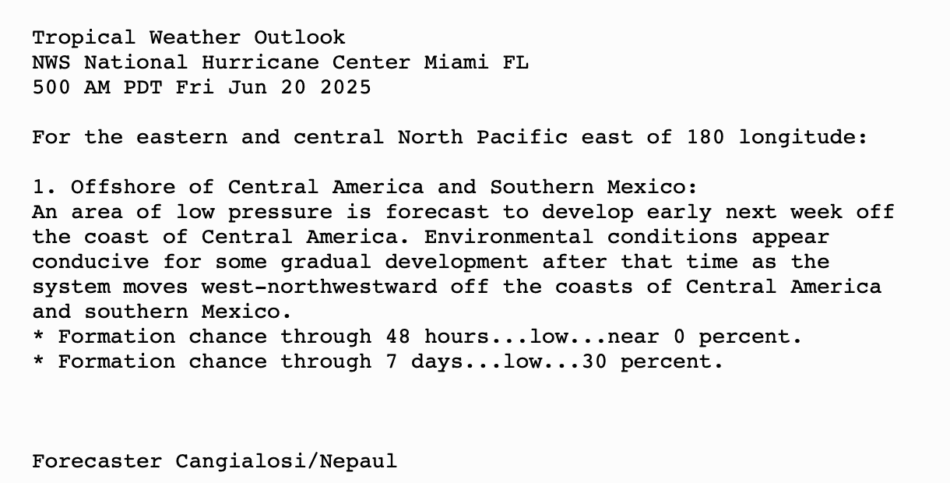 | Tropical Weather Outlook 500 AM PDT Fri June 20 2025 1005 UTC Fri June 20 2025 2025 | |