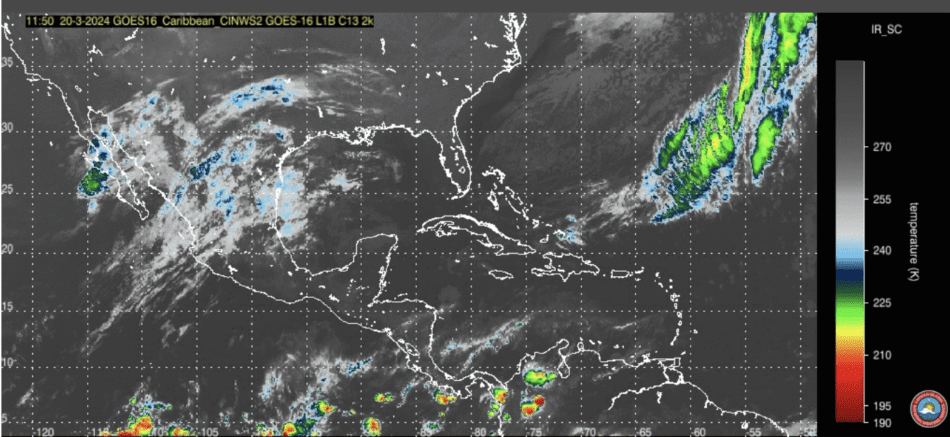 Cloudy skies will continue across the Cayman area for the next 24 to 48 hours as the remnants of a dissipated cold front lingers over the Northwest Caribbean. Satellite images show scattered to broken low to mid-level clouds across the northwest Caribbean.