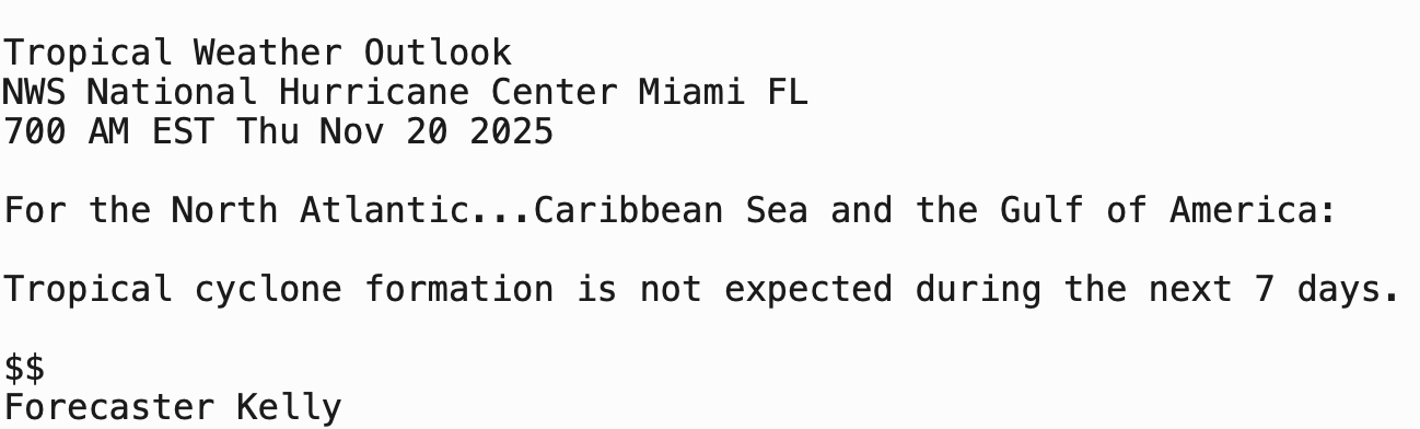 | Tropical Weather Outlook 800 AM EDT Thu 209 Nov 2025 1205 UTC Thu 20 Nov 2025 | |