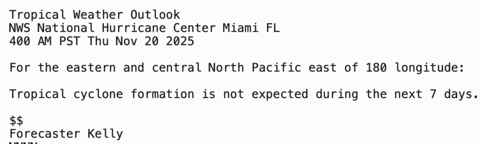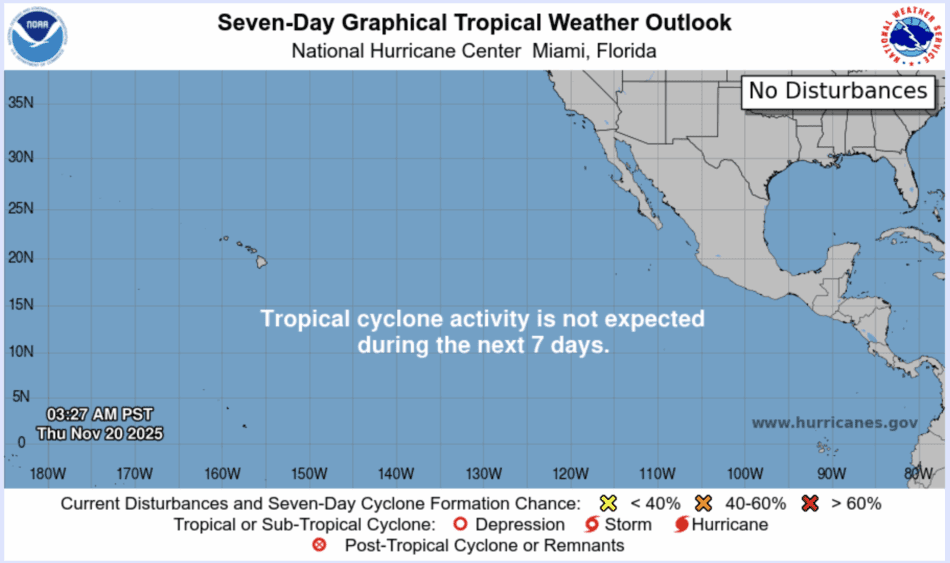 | Tropical Weather Outlook 500 AM PDT Thu 20 Nov 2025 1005 UTC Thu 20 Nov 2025 | |