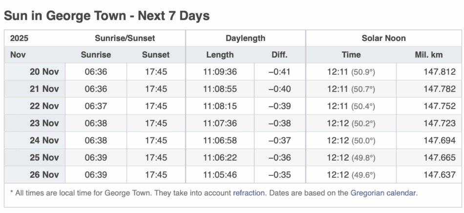 SUN IN GEORGE TOWN – NEXT 7 DAYS