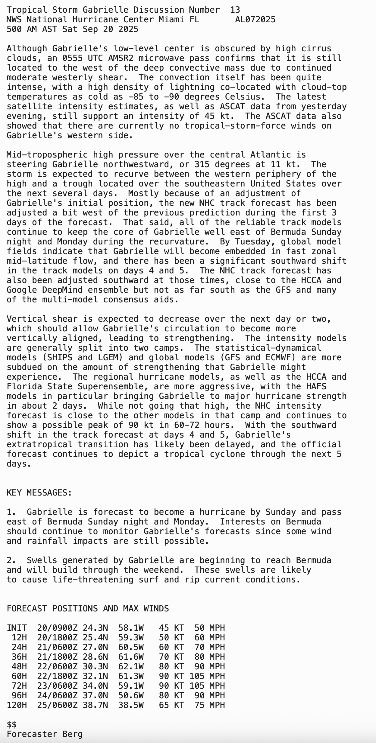 GABRIELLE MOVING NORTHWESTWARD… …EXPECTED TO BECOME A HURRICANE AND PASS EAST OF BERMUDA SUNDAY NIGHT AND MONDAY.