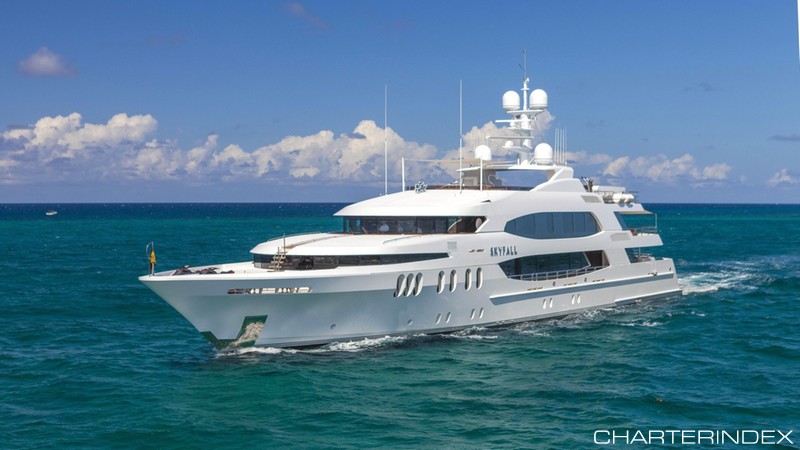 From Worth Avenue Yachts SKYFALL 190ft / 57.9M | Builder: Trinity Yachts | Year: 2010 SKYFALL Length 190ft (57.9m) Beam 33ft 6in (10.2m) Draft 8ft 6in (2.6m) Year Built 2010 Builder Trinity Yachts Designer Trinity Yachts Sleeps 12 Crew Captain…