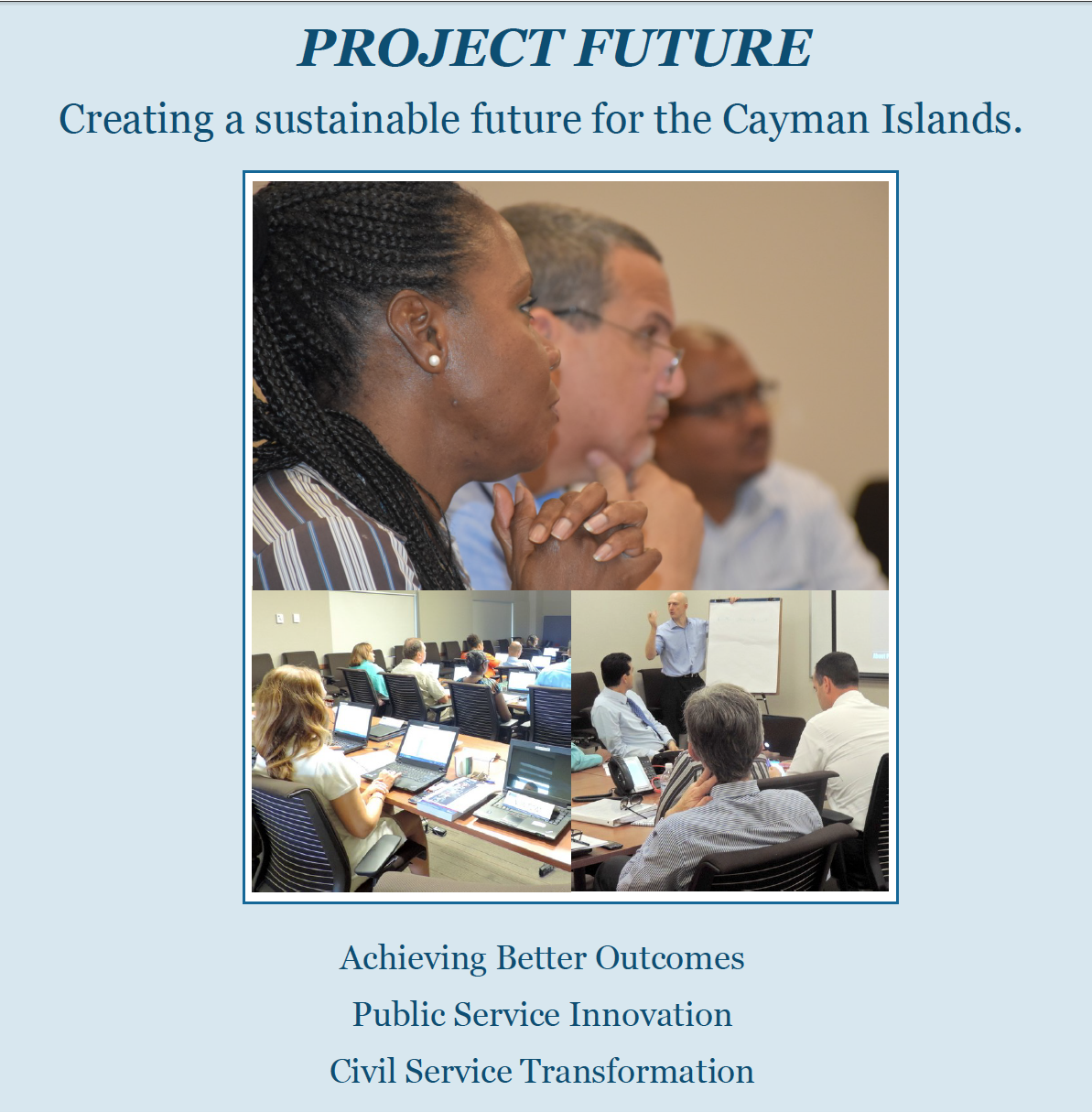 Project Future Update Report By Premier Hon. Alden McLaughlin, MBE, JP, MLA 8 June, 2016 In November, 2015, the Deputy Governor and I launched the “Programme Brief” for Project Future, establishing a comprehensive and far-reaching programme of public sector reform….