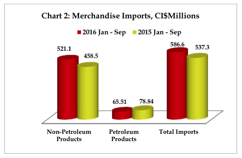 Total value of imports to the Cayman Islands grew by 8.6 percent