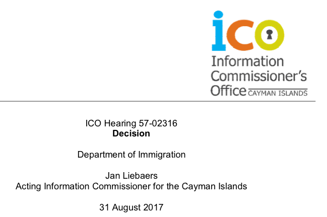 Acting Cayman Islands Information Commissioner releases Hearing Decision involving Department of Immigration.