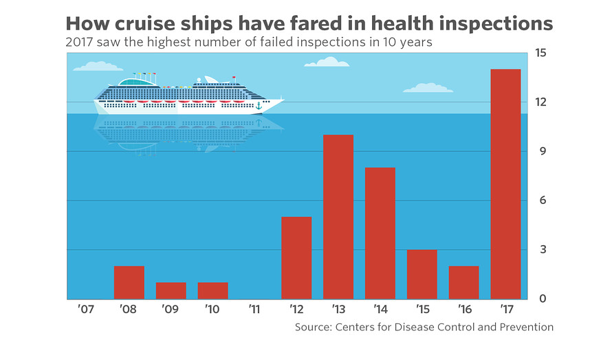 By Jacob Passy But even ships that pass inspections can have serious violations In 2018, cruise ships may need to clean up their act. More cruise ships failed health inspections in 2017 than in any year in the past decade,…