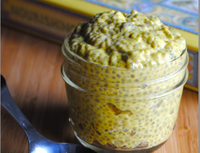 Turmeric Chai Chia Pudding From THE BLENDERIST From Yummly 7 Ingredients 10 Hours 130 Calories 7 Ingredients 10Hours 130 Calories Servings 3 Ingredients 1 1/2 cups cashew milk (or other nut milk) 1/3 cup chia seeds 2 tablespoons maple syrup 1 teaspoon ground turmeric 1/2 teaspoon cinnamon 1/8 teaspoon ground cardamom 1/8 teaspoon ground cloves INSTRUCTIONS…