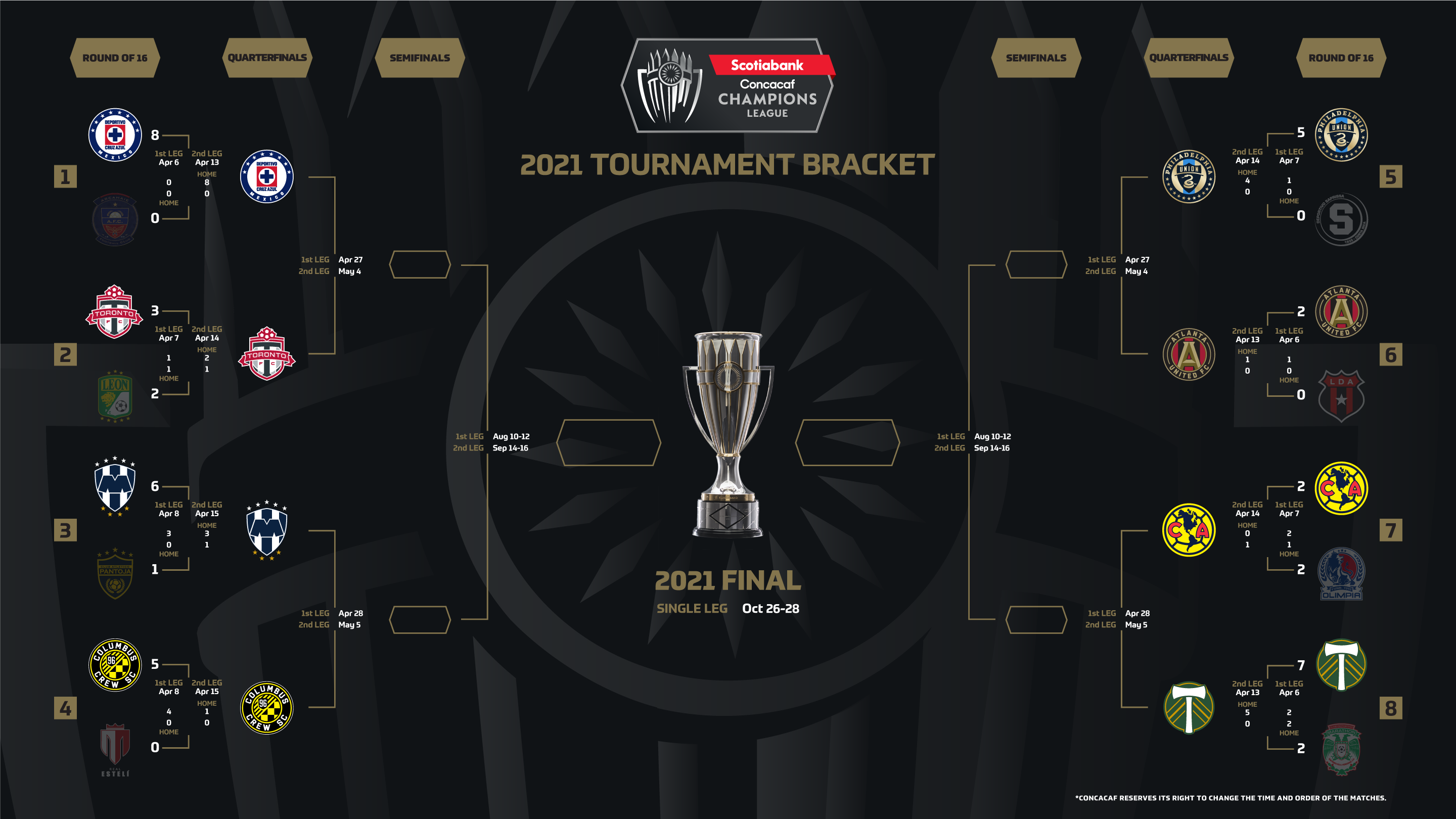 | schedule confirmed8 clubs continue their quest to be crowned regional club champion and the right to represent Concacaf at the FIFA Club World Cup.The road to the single leg final in October will continue with the home and away Quarterfinals in late April and early May.Miami, FL (Friday, April 16, 2021) – Concacaf has confirmed the schedule for the Quarterfinals of the 2021 Scotiabank Concacaf Champions League (SCCL). The four home-and-away matchups will take place April 27-28 (first legs) and May 4-5 (second legs). The Round of 16 culminated last night in Monterrey, Mexico, with CF Monterrey (MEX) joining Atlanta United FC (USA), Club America (MEX), Columbus Crew SC (USA), Cruz Azul (MEX), Philadelphia Union (USA), Portland Timbers (USA) and Toronto FC (CAN) in the second round of the region’s premier competition for clubs. The 2021 SCCL Quarterfinals will be played as follows (home club listed first and in eastern time): Tuesday, April 27, 2021 20:00 Atlanta United FC (USA) vs Philadelphia Union (USA) 22:00 Toronto FC (CAN) vs Cruz Azul (MEX) Wednesday, April 28, 2021 20:30 Columbus Crew SC (USA) vs CF Monterrey (MEX) 22:30 Portland Timbers (USA) vs Club America (MEX) Tuesday, May 4, 2021 20:00 Philadelphia Union (USA) vs Atlanta United FC (USA) 22:15 Cruz Azul (MEX) vs Toronto FC (CAN) Wednesday, May 5, 2021 20:00 CF Monterrey (MEX) vs Columbus Crew SC (USA) 22:15 Club America (MEX) vs Portland Timbers (USA) Semifinals: August 10-12 (first leg) and September 14-16 (second leg) Final: October 26-28 (single leg) For the quarterfinals, the Round of 16 winners of matchups 1, 3, 5 and 7 will play the first leg away and the second leg at home (bracket positions available below). For the semifinals, the two best performing clubs in the earlier rounds of the competition will play the first leg away and the second leg at home. The single leg final will be hosted by the best performing club of the two finalists in the earlier rounds of the 2021 SCCL (based on wins, draws, and, if required, goal difference). The winner of this elite club competition will be crowned regional club champion and will represent the confederation at the 2021 FIFA Club World Cup. The current champion is Tigres UANL after they won the 2020 SCCL and subsequently performed impressively at the 2020 FIFA Club World Cup in Qatar, where they became the first team from the Concacaf region to reach a Club World Cup final. Matches will be widely available for fans across the region to follow and enjoy through the Confederation’s TV partner networks, including FOX Sports (USA-English), TUDN (USA-Spanish), Fox Sports Mexico (Mexico-Spanish), ESPN (Central America-Spanish), OneSoccer (Canada-English), Flow Sports (Caribbean-English) and other local partners. Matches will also be available on the Concacaf Official App (subject to territory restrictions). The free mobile app is available in the Apple and Google Play stores. A reminder of the 2021 SCCL Round of 16 results and match highlights are available below: |