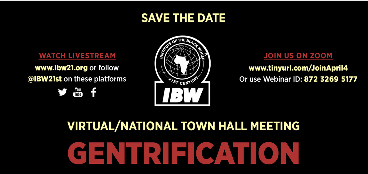 SAVE THE DATE (4/4/22): A Virtual/National Town Hall Meeting on Gentrification