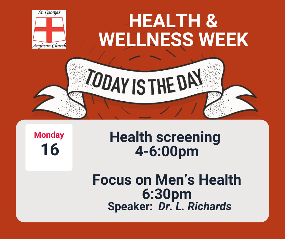 From St George’s Anglican Church Please be reminded that St George’s Health and Wellness Week continues with health screening, and an information session on Men’s Health this evening Monday, October 16, 2023, in the Church. Health Screening will take place…