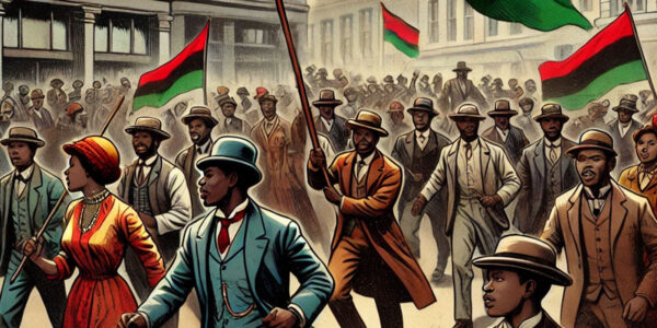 Illustration inspired by a Pan-African gathering c.1920. (Generated by Kyle P. Pennerman, 2024. AI.) How a bold vision in 1920 birthed the iconic red, black, and green Pan-African flag that unites millions today. In 1920, Marcus Garvey and the Universal Negro…