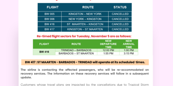 Cayman Airways Limited (CAL) has been informed by the Cayman Islands Airport Authority (CIAA) that the Owen Roberts International Airport on Grand Cayman, as well as the Charles Kirkconnel International Airport on Cayman Brac, will be closing at 9am on…