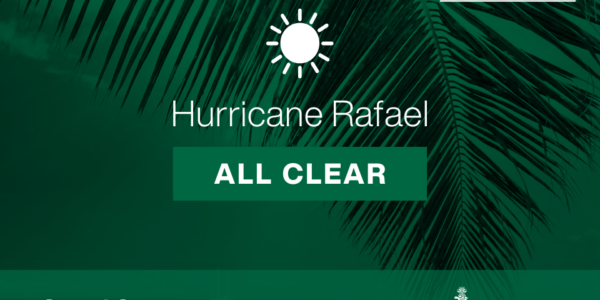 The National Emergency Operations Centre in consultation with the Cayman Islands National Weather Service has given the All Clear following Hurricane Rafael for Grand Cayman, today, Wednesday, 6 November, at 4:00 a.m. A hurricane warning and shelter in place have…