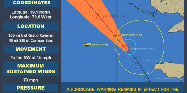 A Hurricane Warning remains in effect for the Cayman Islands on Tuesday, 5 November 2024.Current Conditions: As of 4:00 PM, Tropical Storm Rafael is approximately 105 miles southeast of Grand Cayman and 45 miles southeast of the Sister Islands, moving…