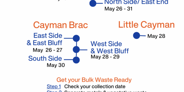 As the first week of this year’s bulk waste collection schedule concludes, DEH Solid Waste teams are moving from West Bay to the George Town district from Monday, May 12, 2025 dedicating an entire week to this massive clean-up exercise…