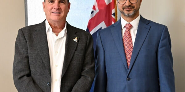 Deputy Premier and Minister for Tourism and Trade Development, Honourable Gary Rutty (left) and India’s non-resident Consul General to the Cayman Islands, His Excellency Mayank Joshi pause for a photo during the diplomat’s courtesy call at the Ministry’s office. During…