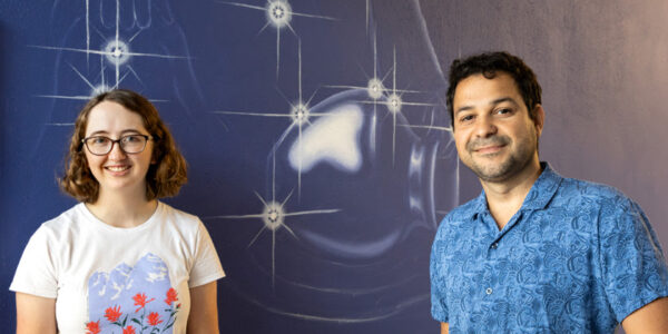 New Mexico State University Astronomy Associate Professor Wladimir Lyra receives an NSF grant to study planet formation around a distant star. Pictured here with Ph.D. student Eleanor Serviss. (NMSU photo by Sarah Kimmerly) New Mexico State University Astronomy Associate Professor…