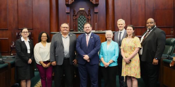 Left to Right: Deputy Clerk, Mrs. Twila Escalante, Deputy Chief Officer, Mrs. Melissa Ebanks, Speaker, Hon. D. EzzardMiller, Mr. Stephen Doughty, Her Excellency the Governor, Mrs. Jane Owen, Director of Overseas Territories, Mr.Robbie Bulloch, Private Secretary, Ms. Emily Holdup, Serjeant-At-Arms,…