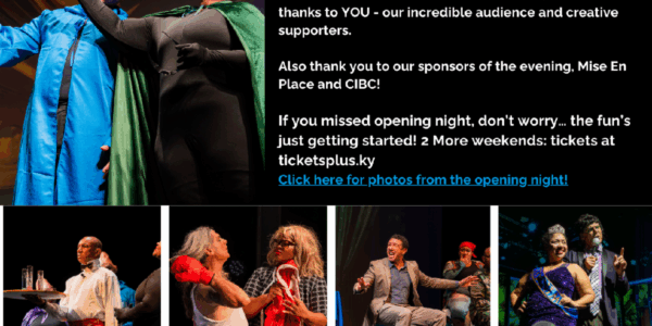 From Cayman National Cultural Foundation Volunteer here! Cayman National Cultural Foundation | The Harquail Theatre 17 Harquail Drive PO Box 30201 | Grand Cayman, KY1-1201 KY