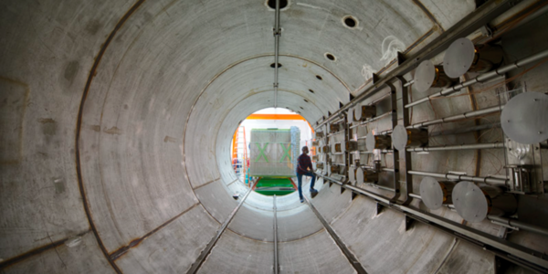 Workers install a component of MicroBooNE’s precision detector (called a time projection chamber) into the cylindrical container, or cryostat. (Fermilab photo by Reidar Hahn) An anomaly in the behavior of neutrinos, nearly massless particles that rarely interact with other matter,…