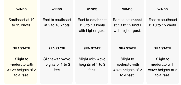Winds: Today: SSE 10-20 mph Tonight: SE 5-10 mph