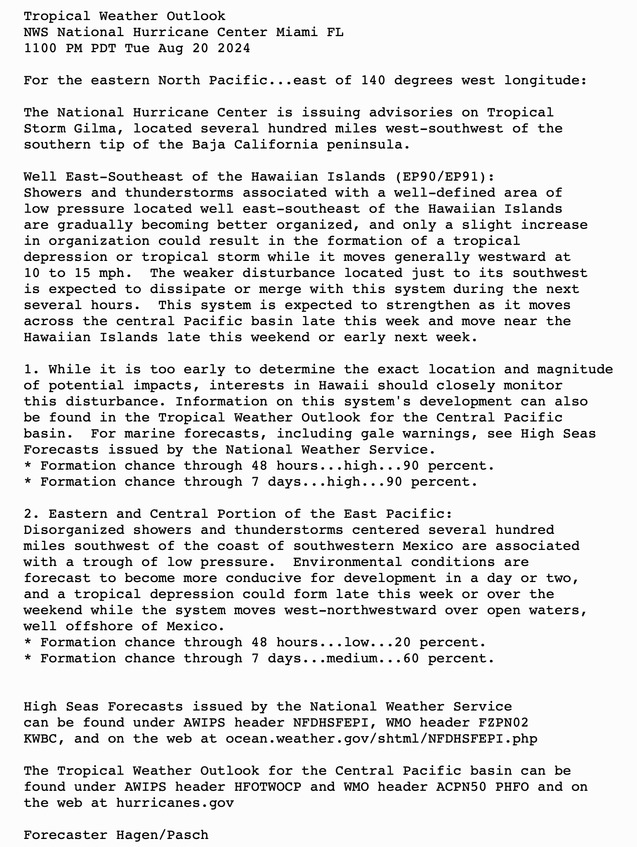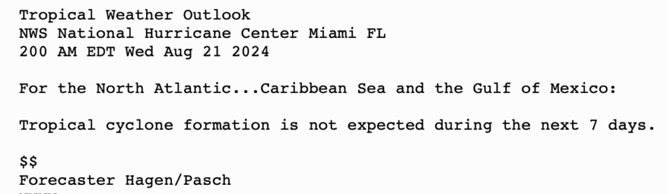 | Tropical Weather Outlook Text | Tropical Weather Discussion |