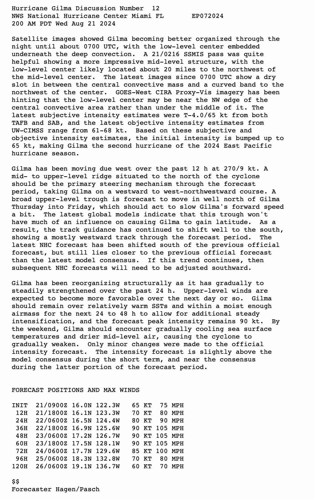 GILMA BECOMES THE SECOND HURRICANE OF THE 2024 EAST PACIFIC HURRICANE SEASON