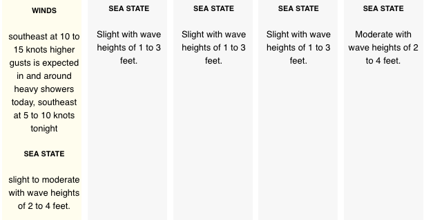 Winds: Today: SE 10-20 mph Tonight: SE 10-15 mph