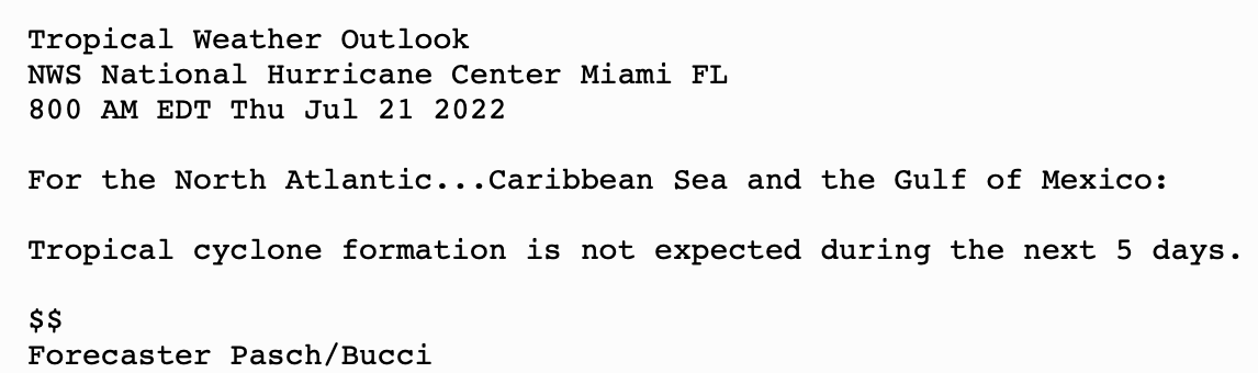 | Tropical Weather Outlook Text | Tropical Weather Discussion |