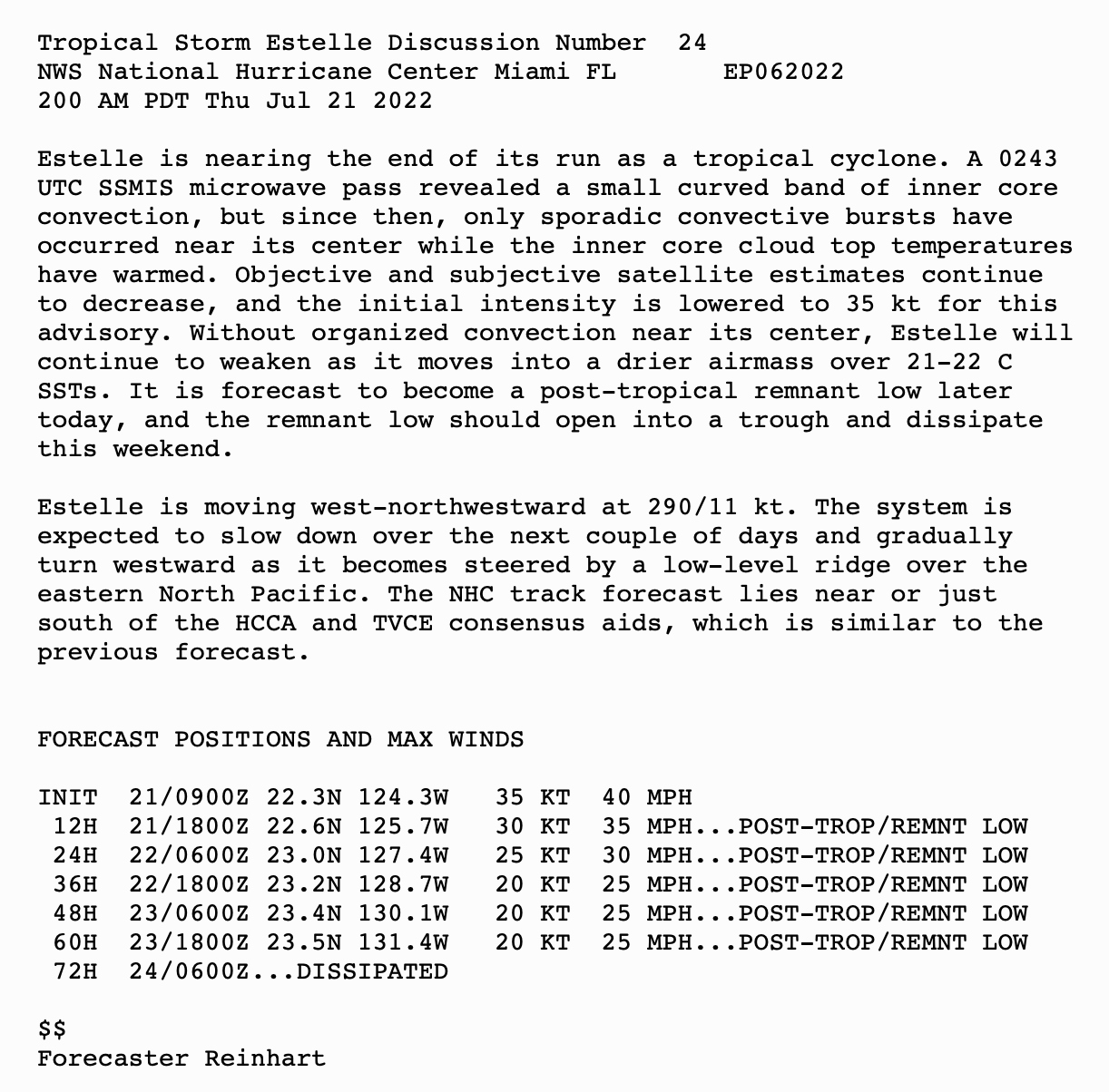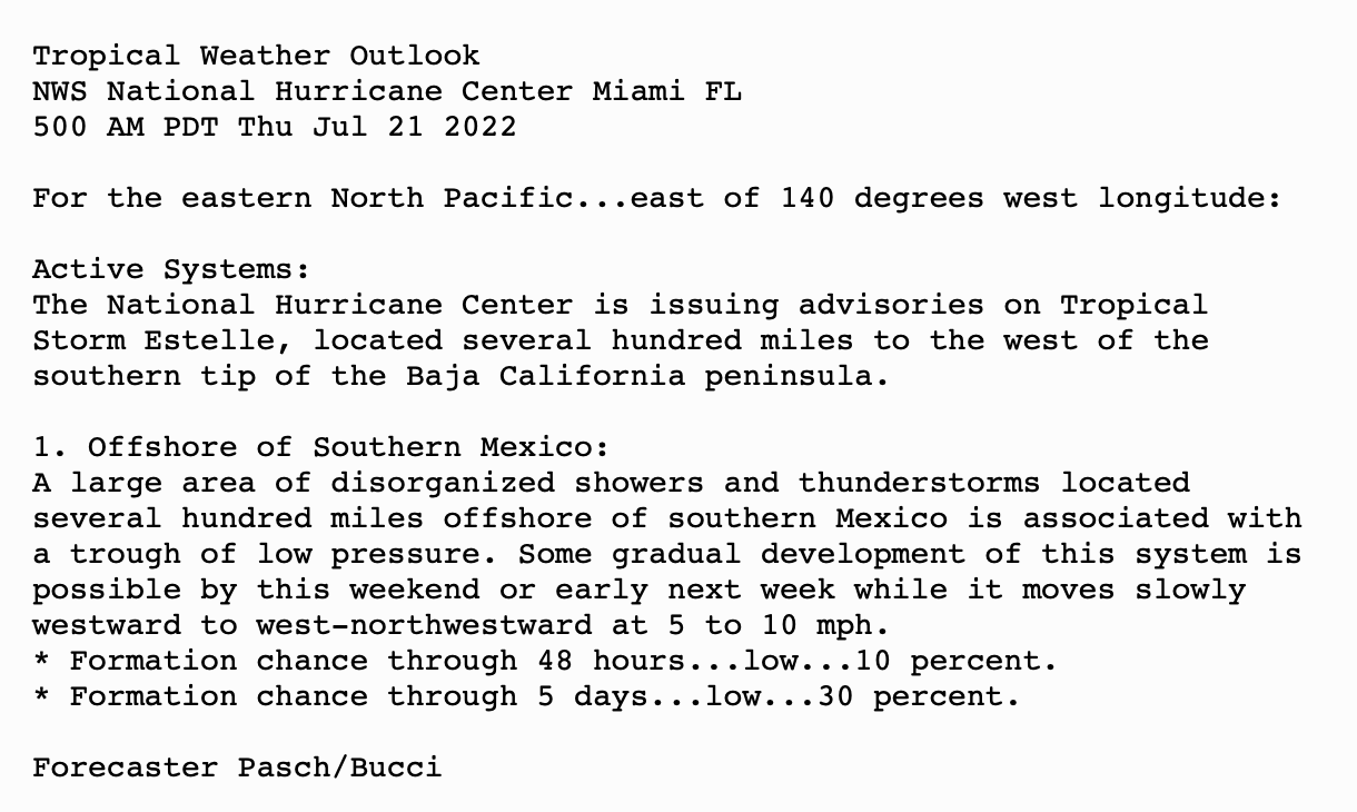 | Tropical Weather Outlook 500 AM PDT Thu July 21 2022 Tropical Weather Discussion 1005 UTC Thu July 21 2022 | |
