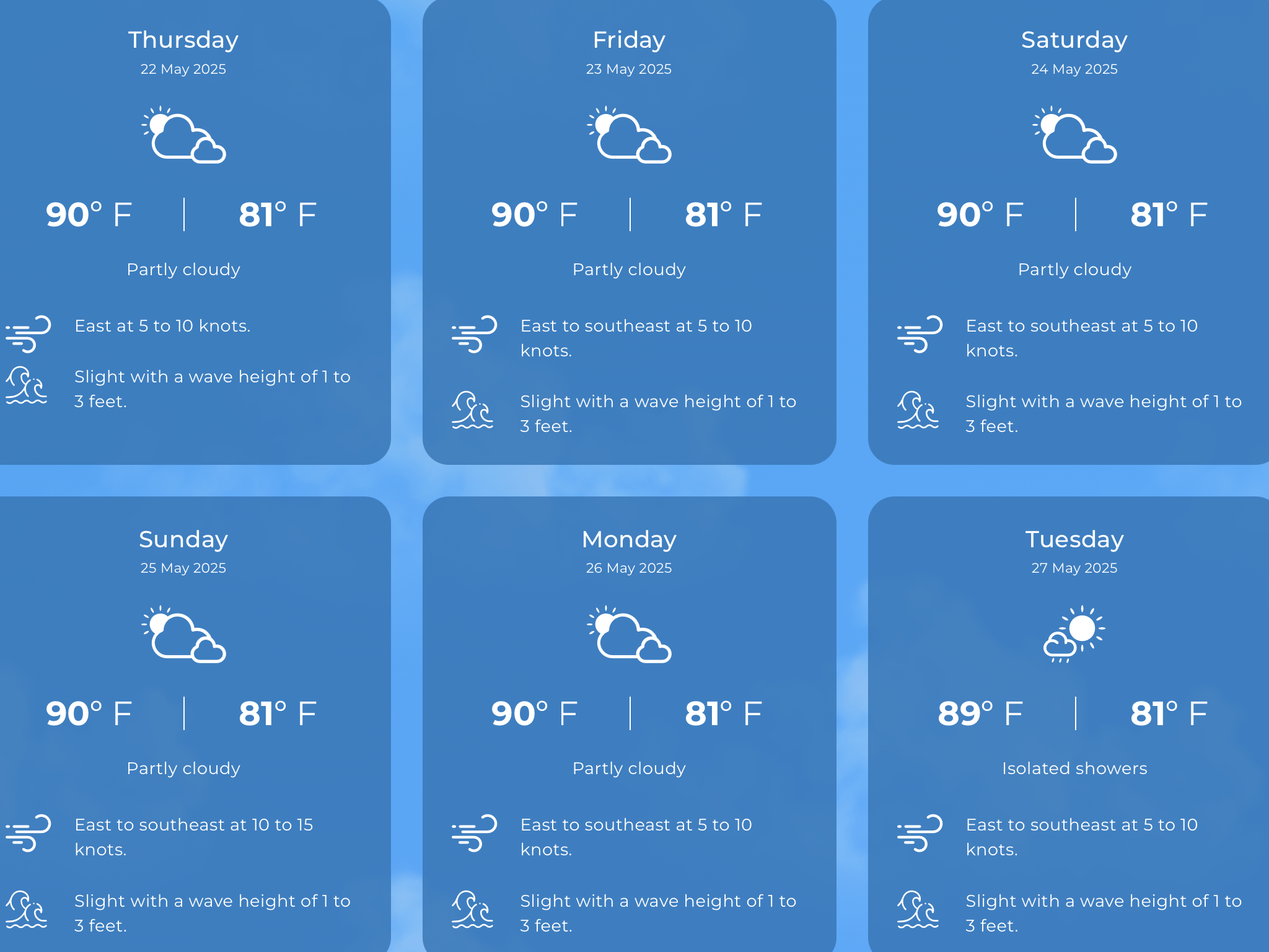 Continued light winds and seas are expected across the Cayman area over the next few days.