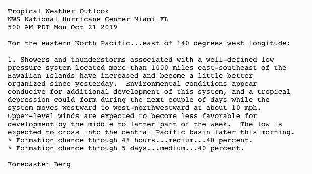 21 Oct 2019 Weather in Cayman & Tropical Report