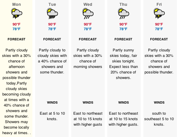 Temperature: Today’s expected temperatures – 81°F to 90°F. Yesterday: H 90.4°F L 83.4°F