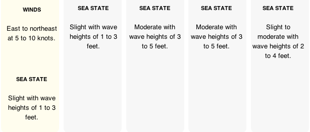 Winds: Today ESE 10-15 mph Tonight E 5-10 mph