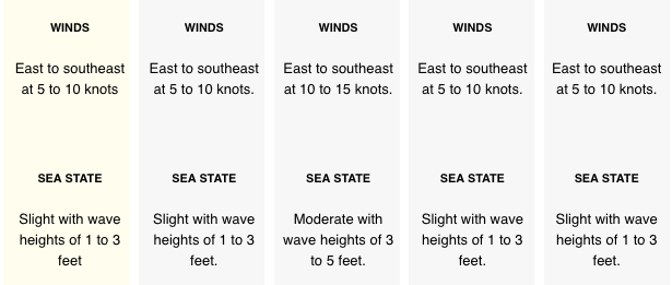 Winds: Today: E 10-15 mph Tonight: E 5-10 mph