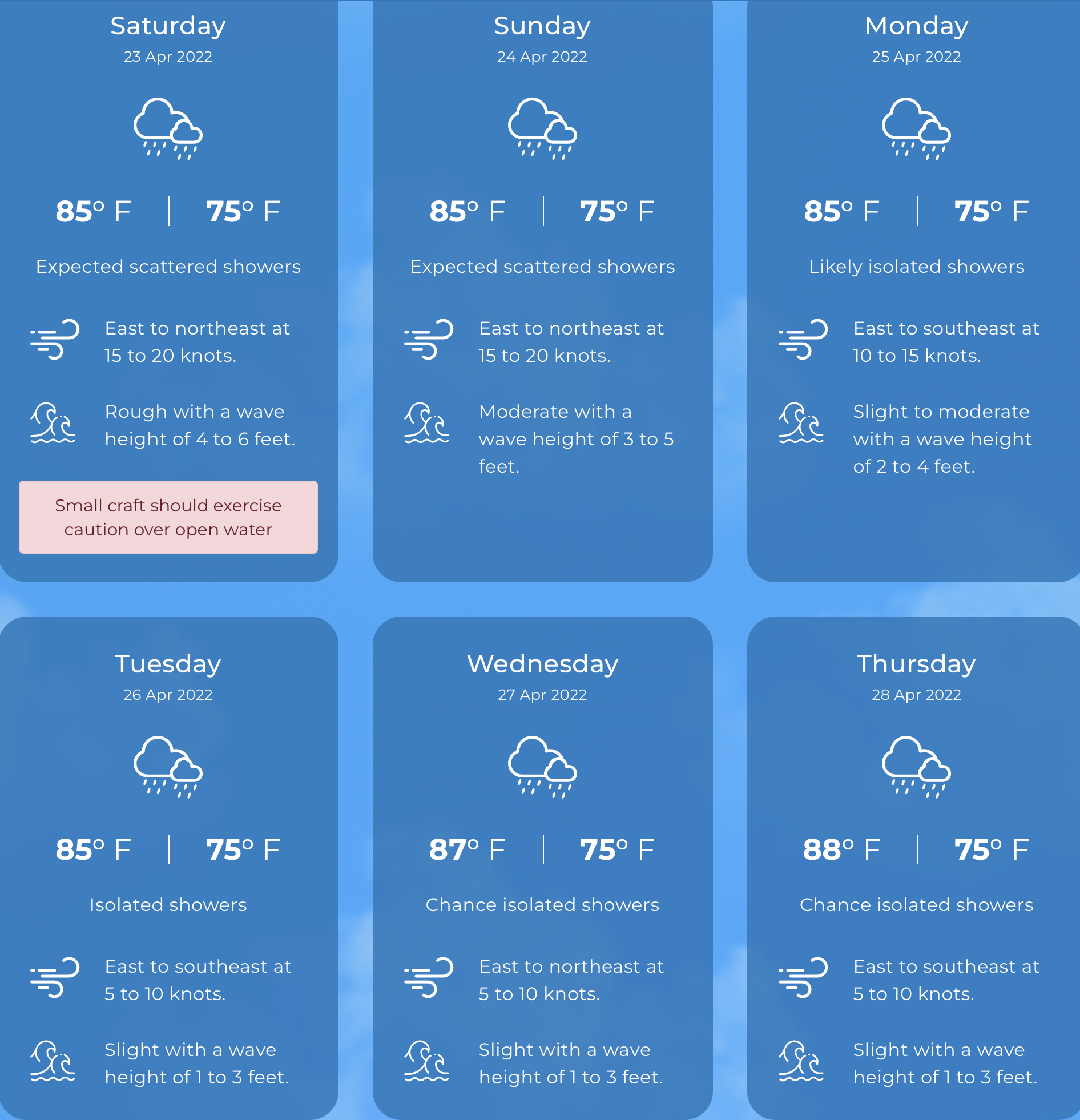 IMPORTANT NOTICEThe times reflected in the tidal table for Grand Cayman are predictions valid as references for sports fishing in areas near the coast of Grand Cayman. THEY ARE NOT SUITABLE FOR NAVIGATION. Remember that to practice any activity at sea like diving, windsurfing and fishing from a boat or underwater fishing should always be consulted with the official tide tables of the port of Grand Cayman.