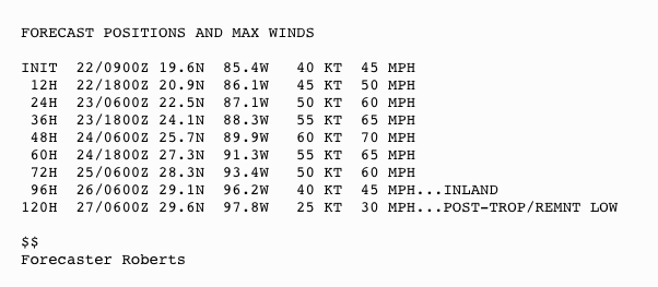 Tropical storm data and graphics from National Hurricane Center at: https://www.nhc.noaa.gov/