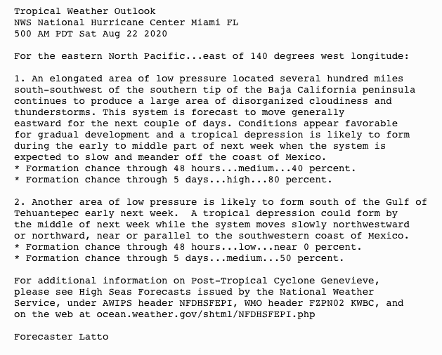 | Tropical Weather Outlook 500 AM PDT Sat Aug 22 2020 |