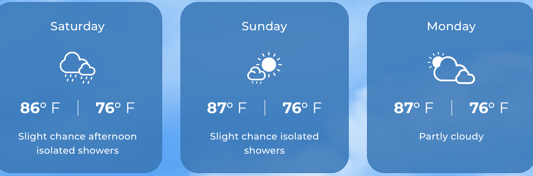 UV: 9.1 VERY HIGH (UP from yesterday) Expected temperatures: 74°F to 84°F. Yesterday: H 83.8°F L 73.4°F