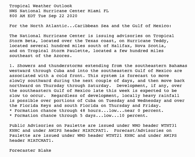 | Tropical Weather Outlook (en Español*) 800 AM EDT Tue Sep 22 2020 |