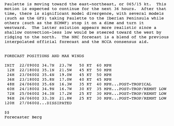 TS PAULETTE MOVING TOWARD THE EAST-NORTHEAST SOUTHEAST OF THE AZORES