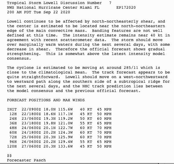 TS LOWELL MOVING WEST-NORTHWESTWARD WITH LITTLE CHANGE IN STRENGTH